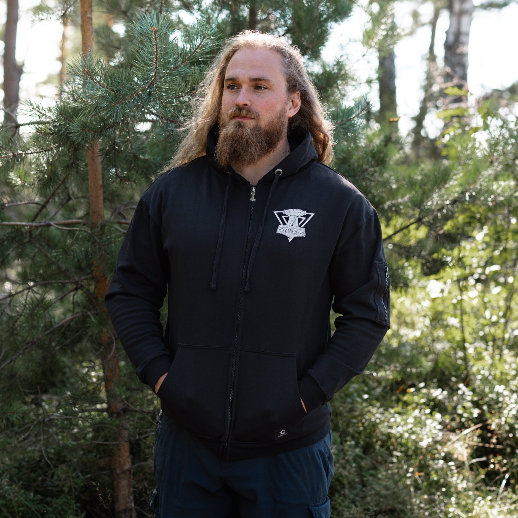 Meet your new favorite hoodie. This premium full zip hoodie is custom-made for Grimfrost in soft, luxurious organic cotton. Even the dyeing and printing processes are fully organic, which is good for both You and Mother Earth. The hoodie comes with a zipped utility pocket on the left arm and spacious kangaroo pouch pockets. To top things off, we have given the drawstring eyelets a Younger Futhark runic circle.