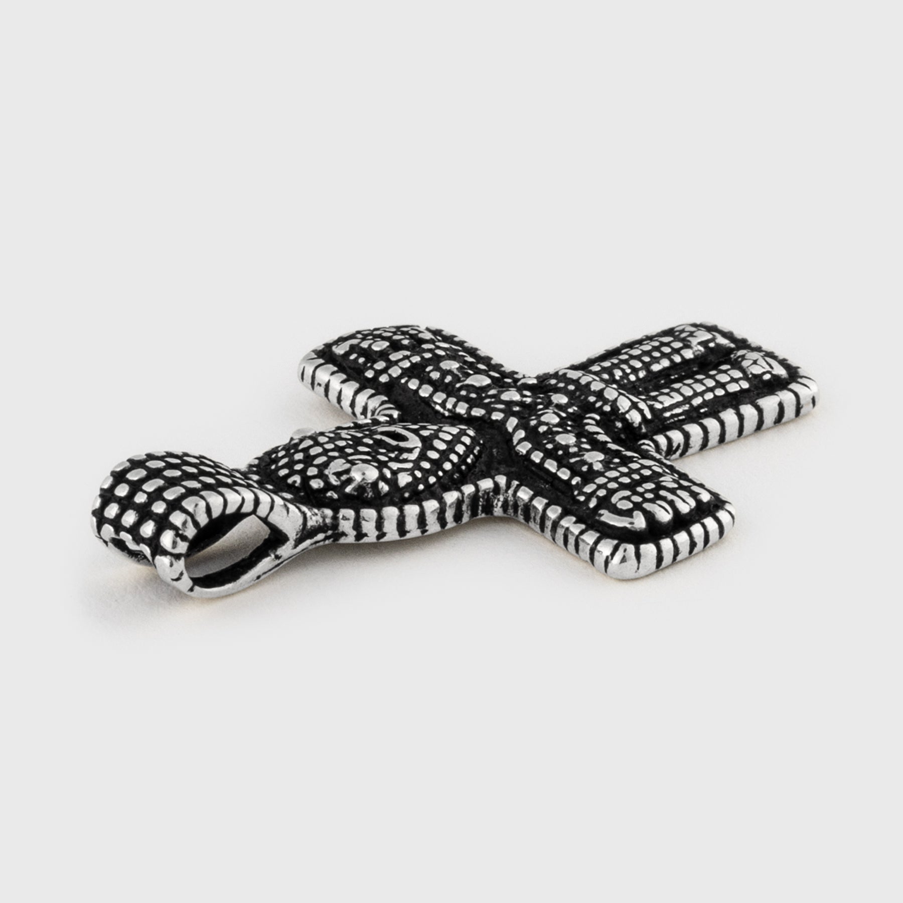 Reproduction of a Viking Age crucifix found in Birka, Sweden. It was found in the grave of rich woman who lived in the 800s. The exact same design has surfaced elsewhere as well, such as in Ketting and Nyborg in Denmark. The original find can be found in the Swedish History Museum under inventory no. SHM108914