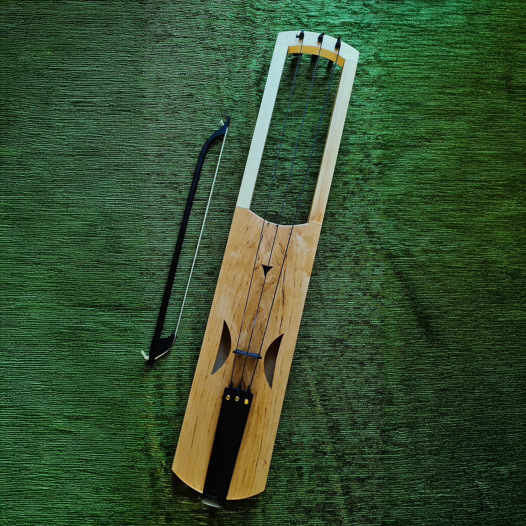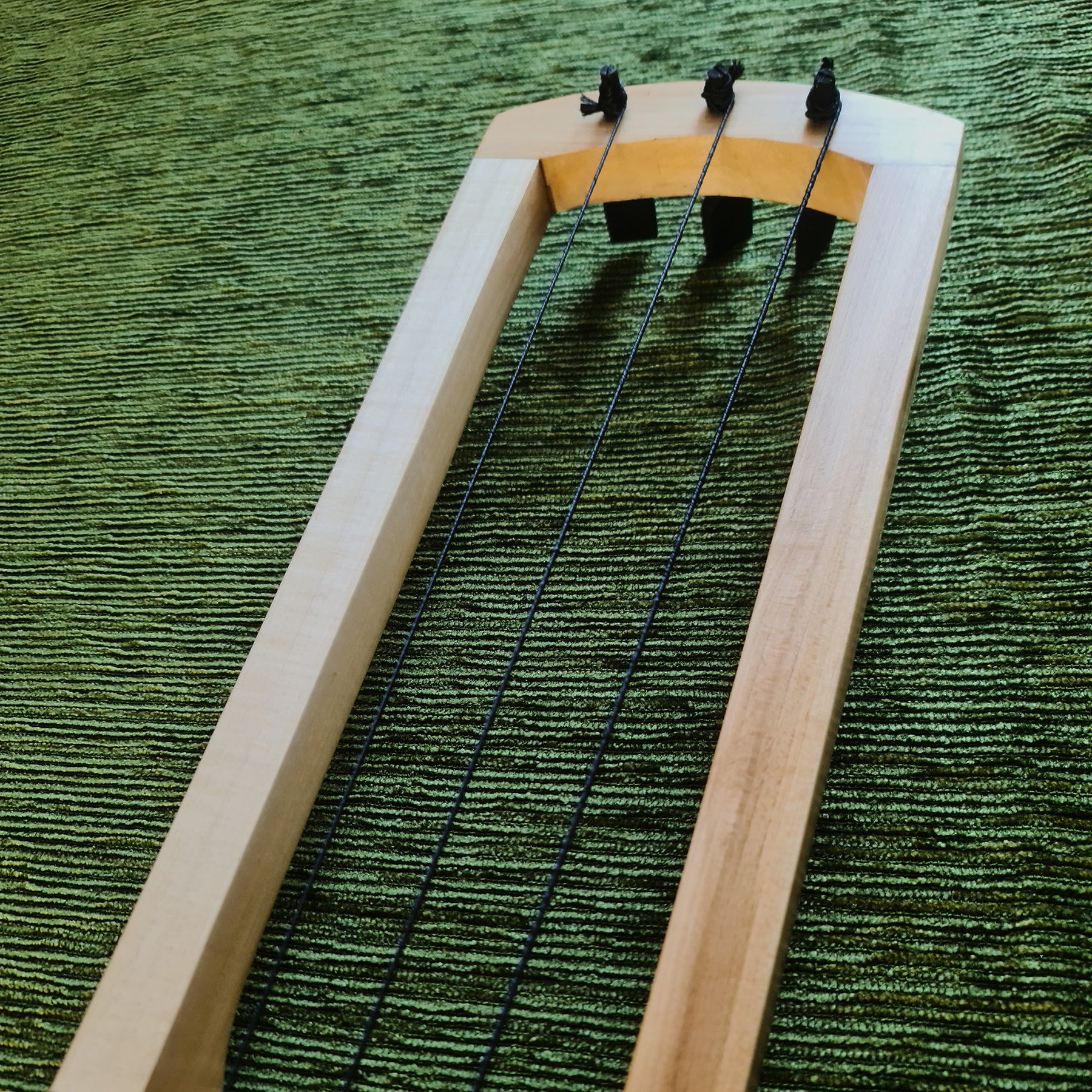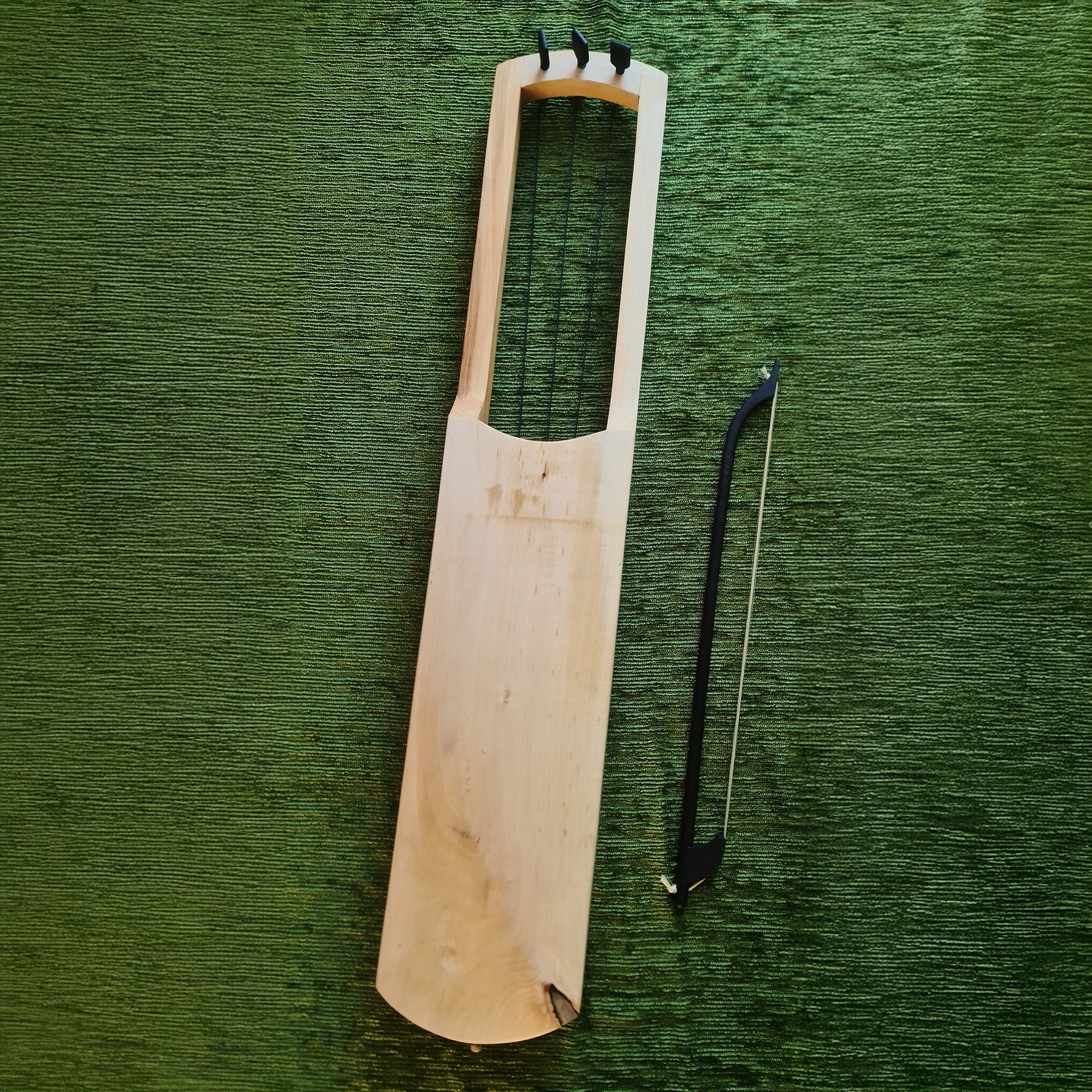 This three-string bass tagelharpa is designed to deliver a deep, powerful voice while honoring the raw character of traditional bowed lyres. The body is hand-carved from a single solid piece of linden wood, providing structural integrity and a balanced, responsive resonance.