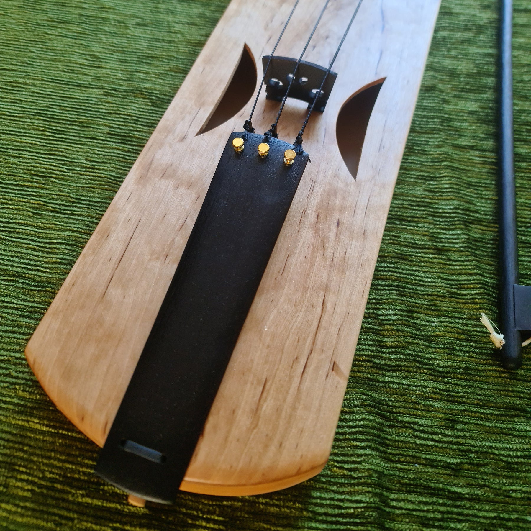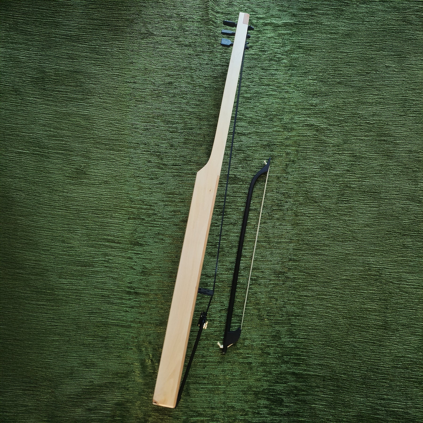 A hand-applied shellac finish protects the wood while enhancing its natural beauty, giving the instrument a warm, understated elegance. The internal construction features a built-in support bar and soundpost, carefully positioned to enrich the low frequencies and add definition, resulting in a dark, resonant tone with clear articulation. The set includes a well-crafted bow made from ebonized ash with natural horsehair.