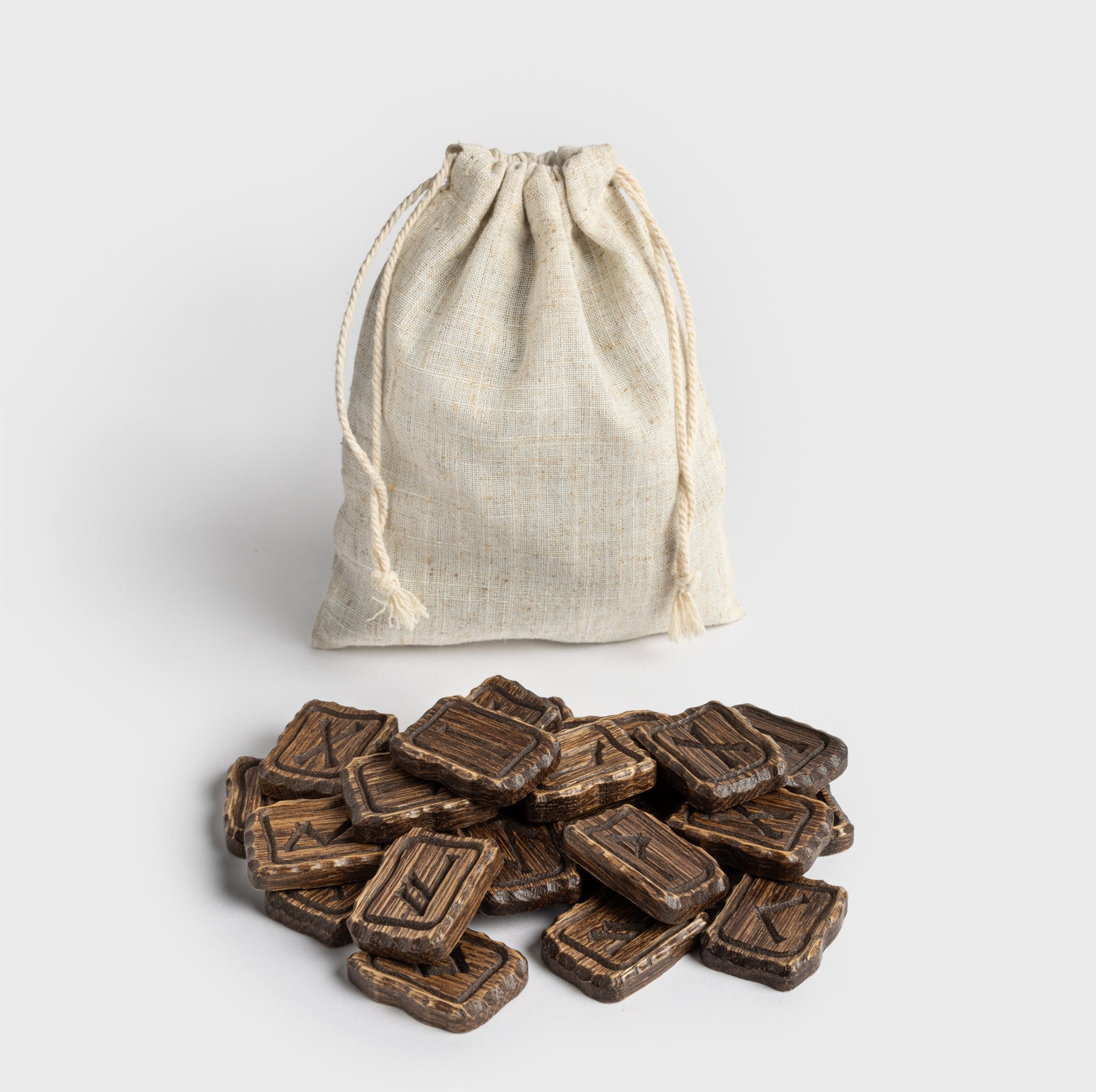 A masterfully crafted set of oak tiles, each engraved with a rune from the Elder Futhark. Perfect for games, divination, or as a striking decorative piece.