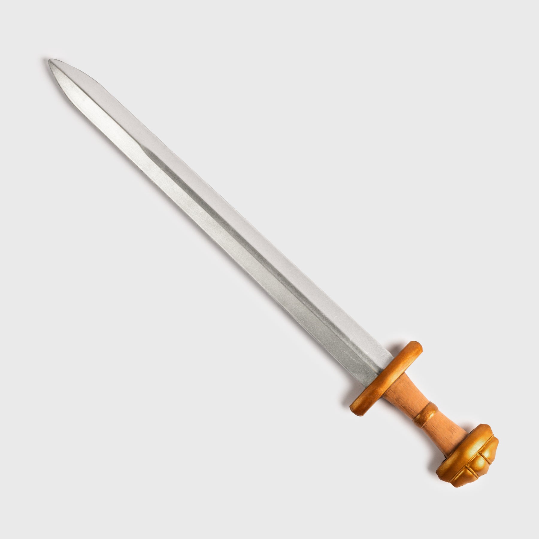 Small Viking sword in high density polyurethane foam material with a fiberglass core. The sword is perfect for battle training, LARP or costume play in places where real swords aren't allowed. Adult use only. Not a toy and not suitable for children under the age of 14.