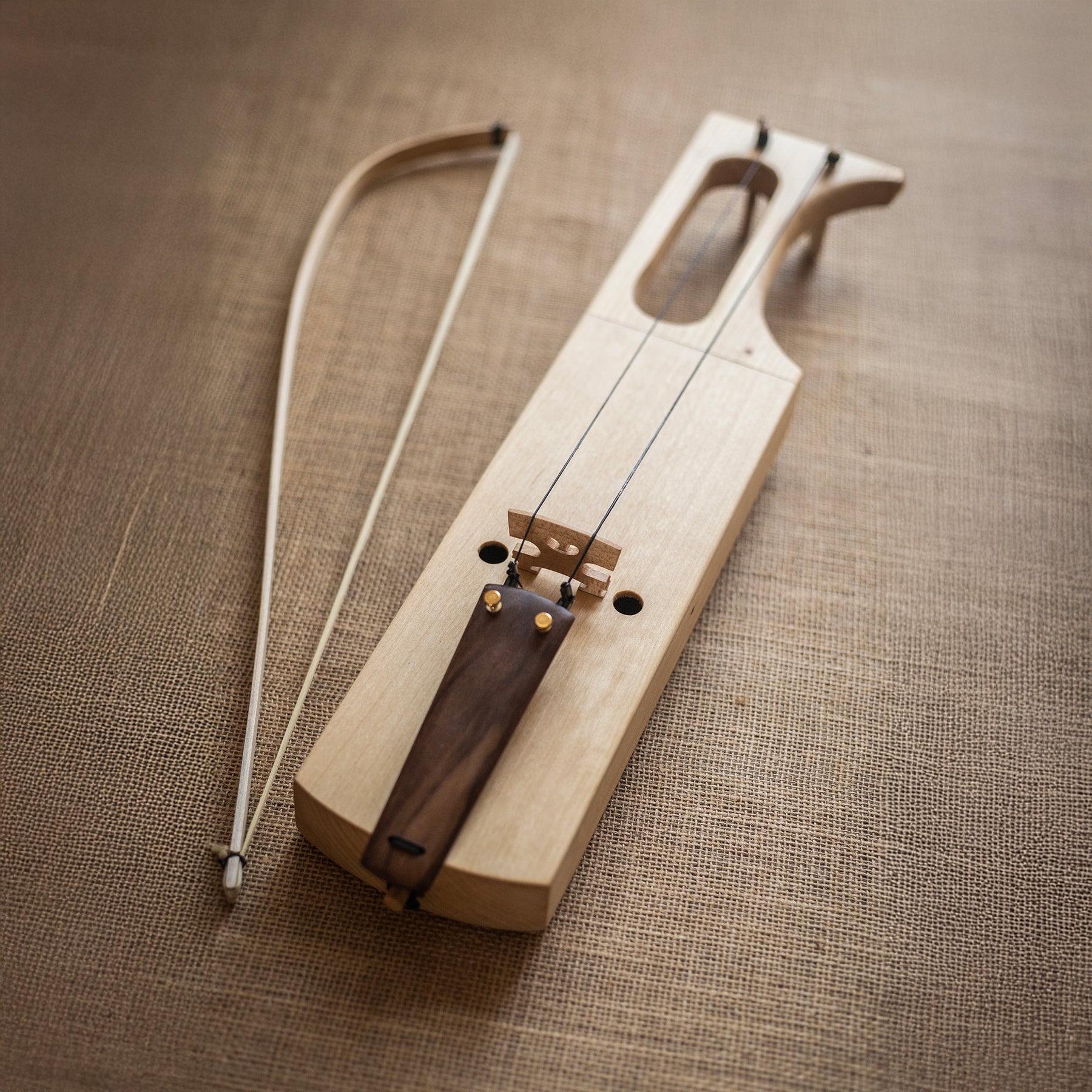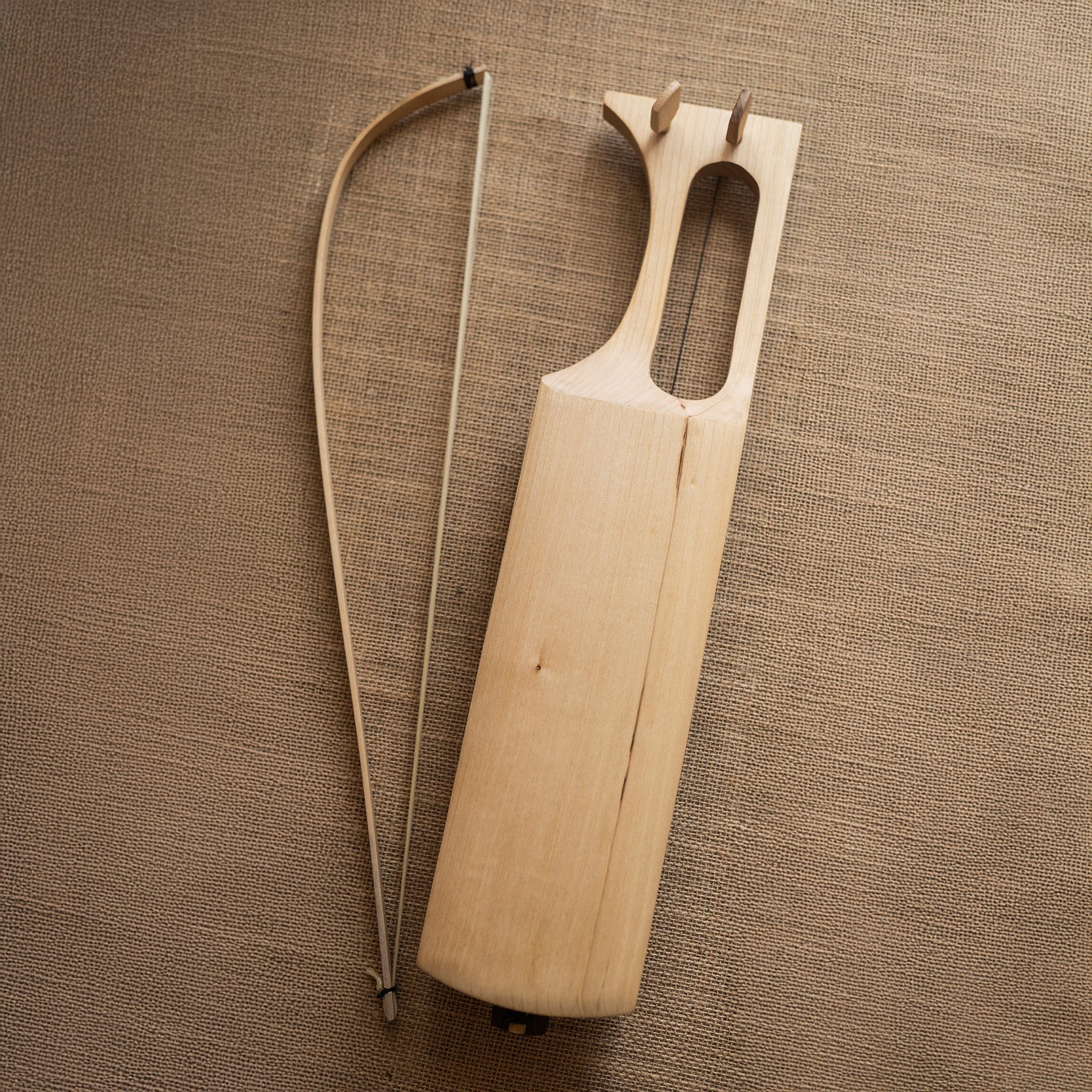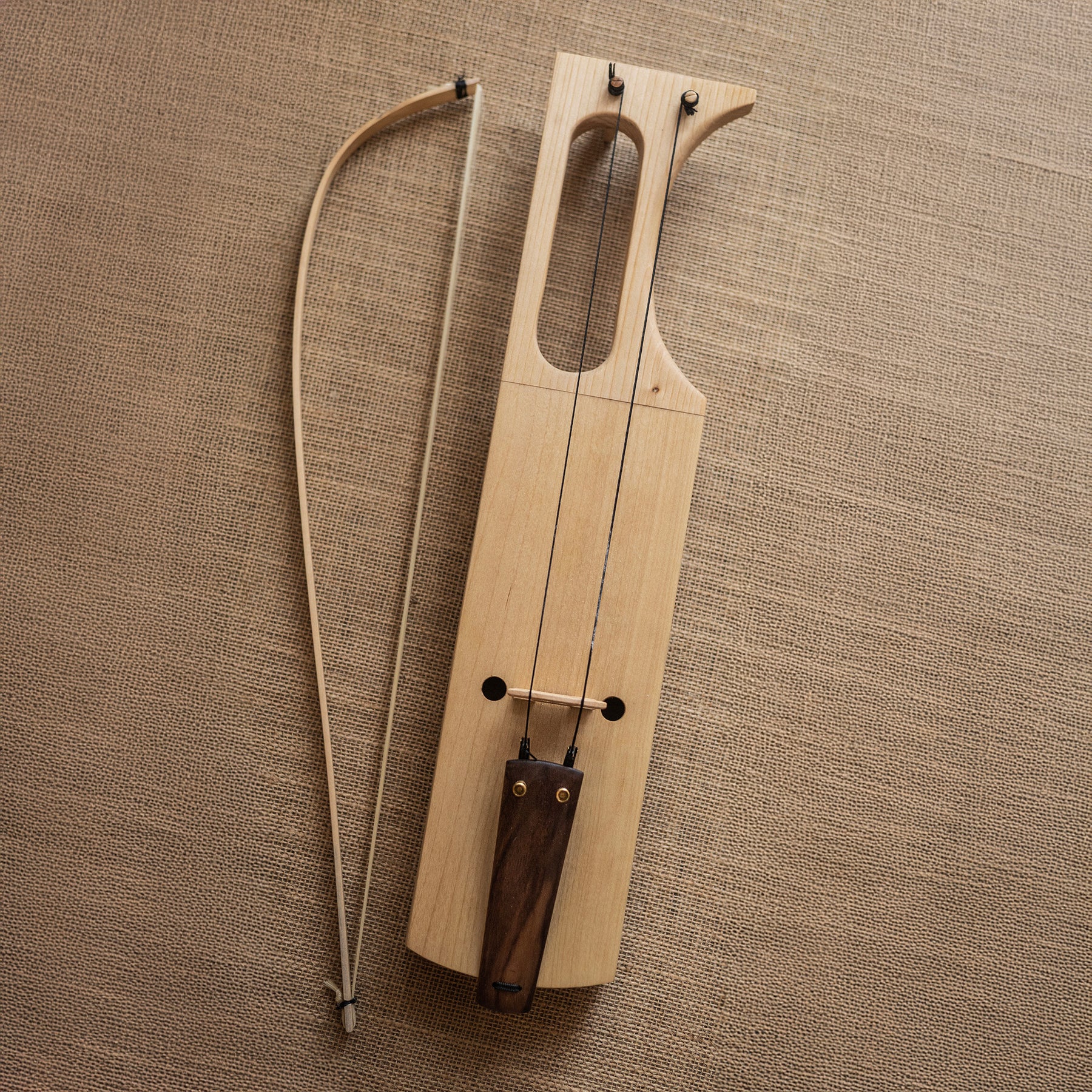 This two-string jouhikko combines modern design with traditional craftsmanship. The body is carved from a single piece of linden wood, ensuring durability and a smooth, even surface. The instrument is finished with a delicate shellac polish, giving it an elegant and refined look. Inside, an integrated bar and soundpost enhance the jouhikko’s resonance and depth, producing a rich, full tone with remarkable clarity. Included in the package is a high-quality bow made of linden, strung with horsehair, along with a block of violin rosin, allowing you to start playing immediately.