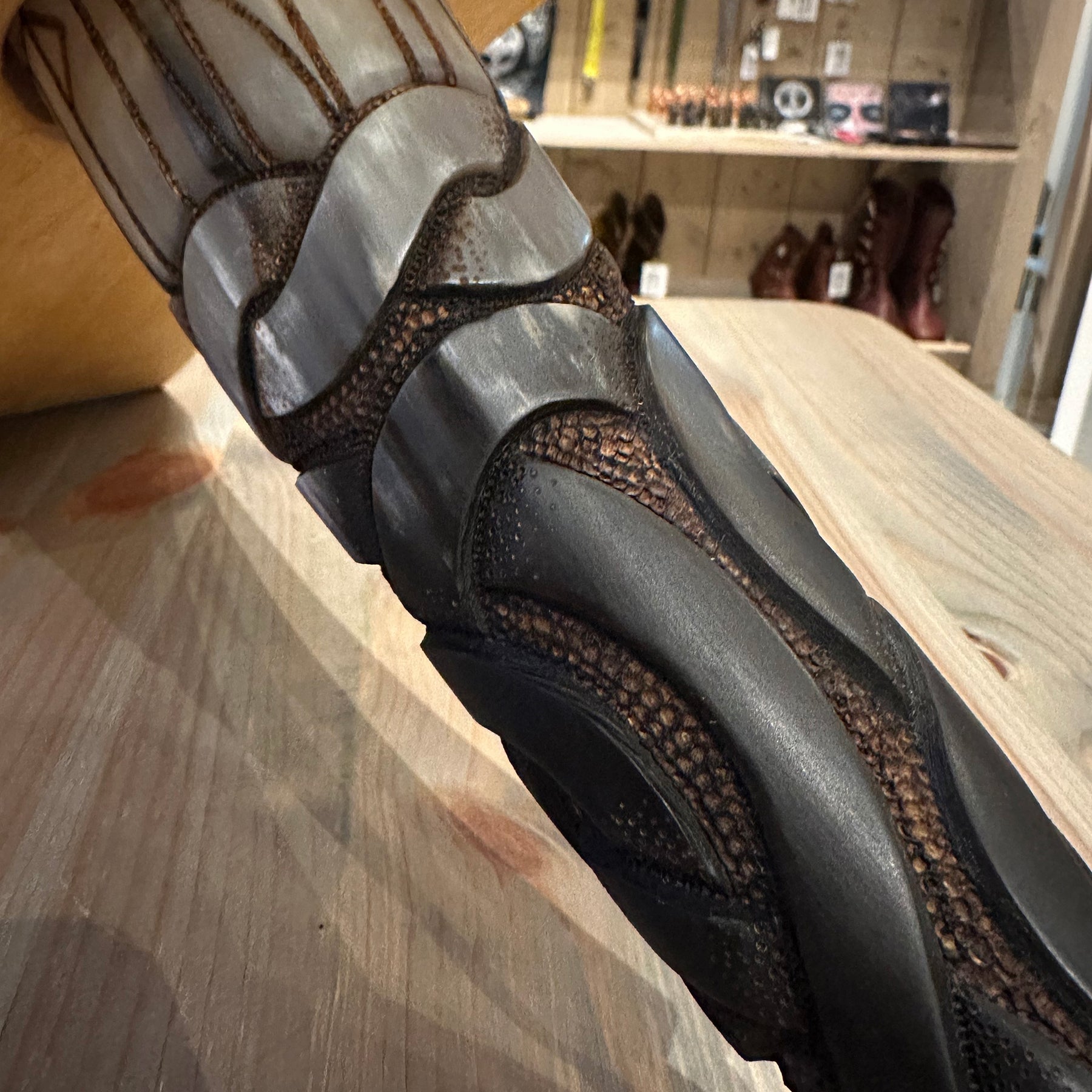 The time-consuming process of making our Premium Horns require a combination of high level artistry and expert crafting skills. Each custom motif is designed for the purpose and carved by hand into the horn. The handmade wooden stand matches the horn in terms of quality and craftsmanship. Each horn is a unique piece of art that stays true to authenticity and quality.