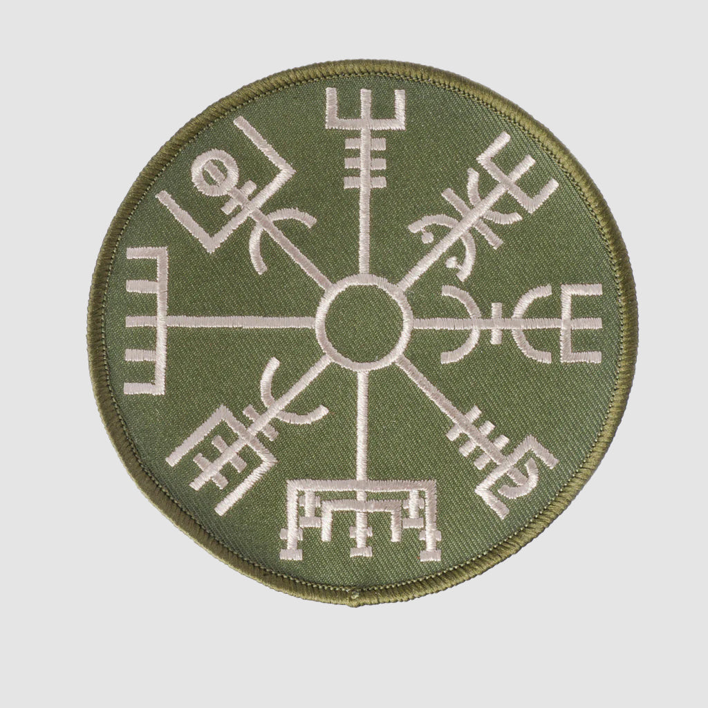 High quality embroidered patch with the Vegvísir runic compass. The Vegvísir is an Icelandic magical symbol of navigation, also known as the "Runic Compass". The old Norse word translates to 'guidepost' or 'direction sign'.